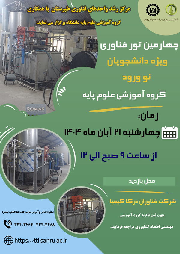 ✅ مرکز رشد واحدهای فناوری طبرستان، با همکاری گروه آموزشی علوم پایه دانشگاه، برگزار می‌کند: