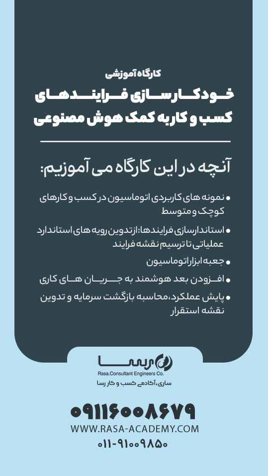 📣📣فراخوان شرکت در کارگاه تخصصی با موضوع: «خودکارسازی فرایندهای کسبوکار به کمک هوش مصنوعی»