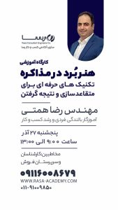 📣📣فراخوان شرکت در کارگاه تخصصی با موضوع: «هنر برد در مذاکره (تکنیکهای حرفهای برای متقاعدسازی و نتیجه گرفتن)»