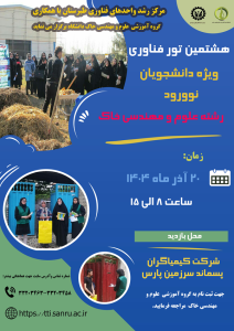 🟢 فراخوان شرکت در هشتمین تور فناوری ویژه دانشجویان نوورود گروه آموزشی علوم و مهندسی خاک